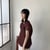 フロントはねっじたデザインで、首ぐりは断ち切り仕様です。
