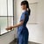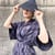 ブルーリネンストライプとグレーコットンリブ素材の