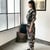 ベージュ/ブラック柄布